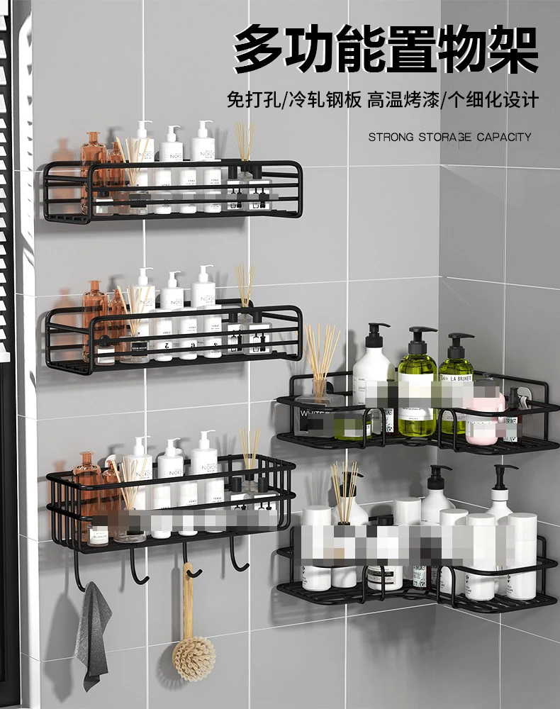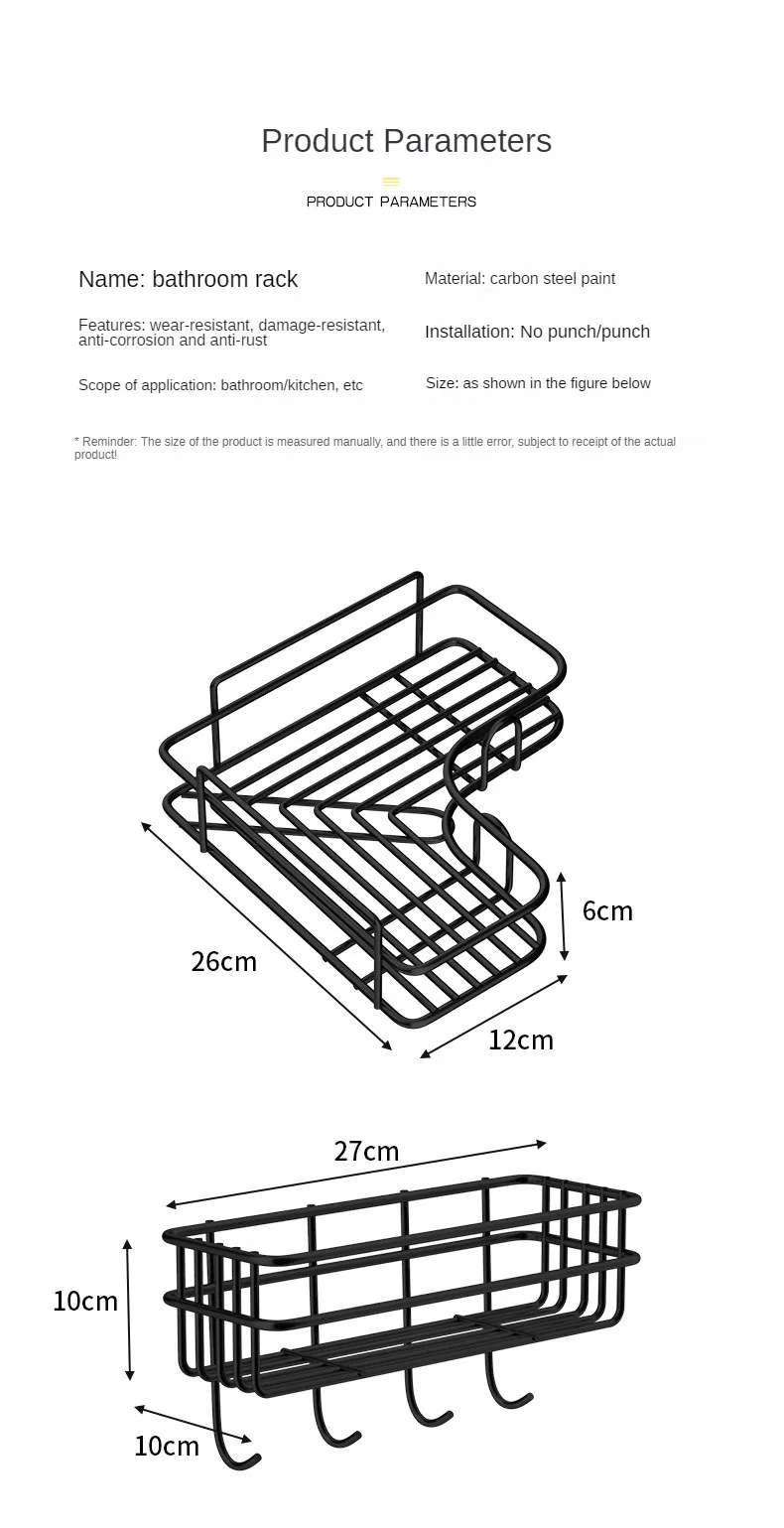 Półka łazienkowa bez wiercenia, montowana na ścianie, narożna, półka do przechowywania, materiał ze stali węglowej, koszyk na odpływ prysznica, organizer łazienkowy